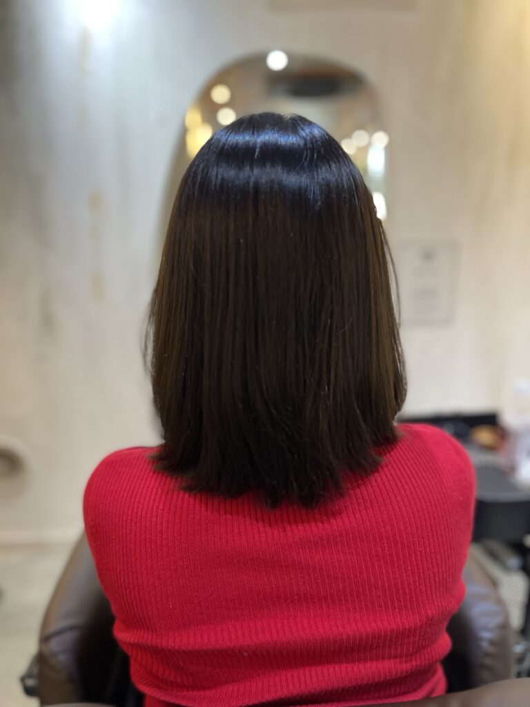 肩ぐらいの長さで縮毛矯正かけるとどうしても末広になると悩んでる方、ぜひ参考にしてみてくださいね。